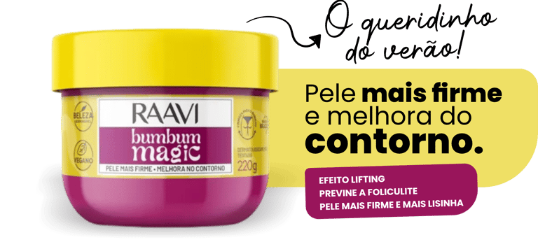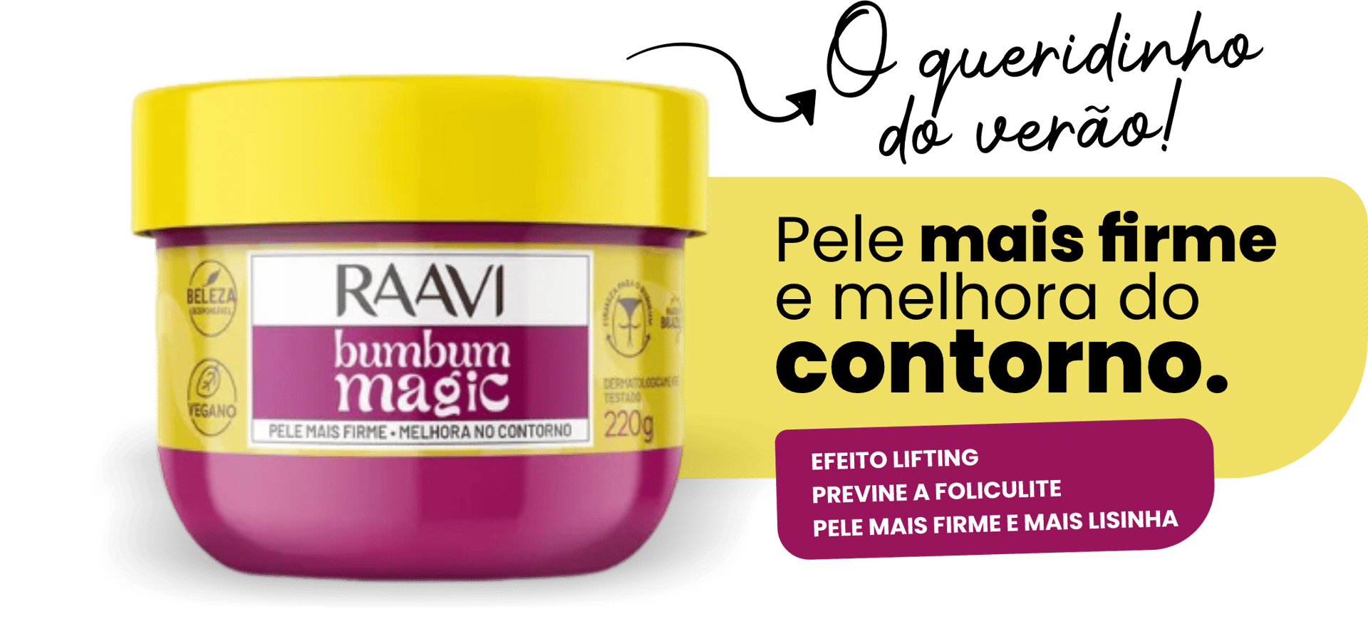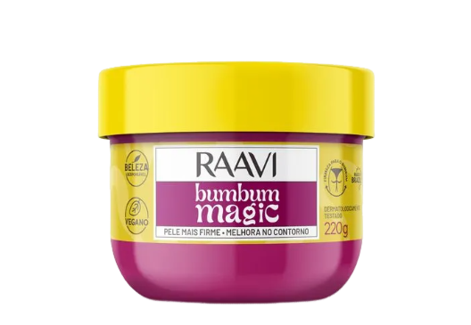 O Creme Bumbum Magic da Raavi tem efeito lifting e é a solução perfeita para quem deseja realçar a beleza e firmeza da região do bumbum e coxas. Desenvolvido com uma fórmula exclusiva e inovadora, este creme promete entregar resultados visíveis, deixando a pele mais lisa, firme e hidratada.